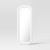 Give your room an instant makeover with this Textured Floor Mirror from Threshold™. This mirror features a textured wooden frame in a white hue that makes it easy to coordinate with a variety of decor themes. Designed in a rectangular shape with round corners, this floor mirror provides a full reflection so you can check your appearance before heading out.