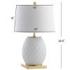 Made of textured ceramic with a white glaze to highlight the diamond-quilted motif, this chic table lamp is accented with a gold leaf base and finial. The combination of gloss and gilding is both contemporary and glam, and would be suitable for a variety of home decor styles. With style that extends all the way to the silk-wrapped cord, this piece shines in more way than one.