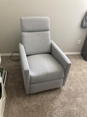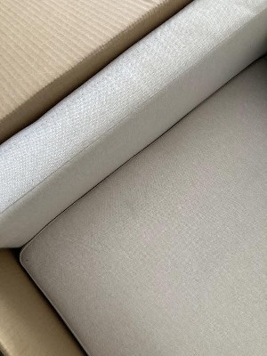Opened box and right away saw some sort of blueish stain, and the fabric is very thin and cheap looking. Besides that the side lever to open the recliner doesn't work and after engaging the lever have to open manually. Then to top those bad things the footrest is hard as a rock and very uncomfortable. I am surprised Target would sell such a piece of junk for over $300. I have had good luck before with Target, but it was for Ashely brand