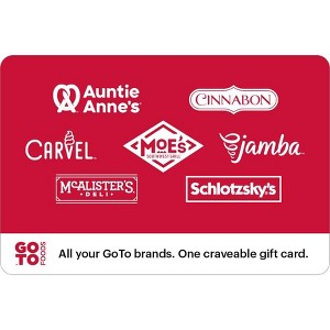 The one gift card to fulfill any craving, valid at seven fan-favorite brands with over 3,900 locations across the U.S. This GoTo Foods gift card is redeemable at participating Auntie Anne’s, Carvel, Cinnabon, Jamba, McAlister’s Deli, Moe’s Southwest Grill and Schlotzsky’s locations.