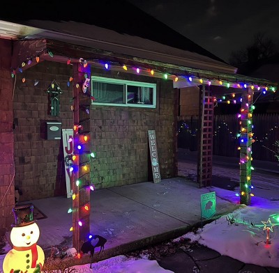 A: The lighted length of this string is 16 feet, and there is a 4 inch lead in cord and a 4 inch lead out cord. If you have any other questions, you can reach out to us at 800-353-3116 or CS@SeasonalSpecialties.com.