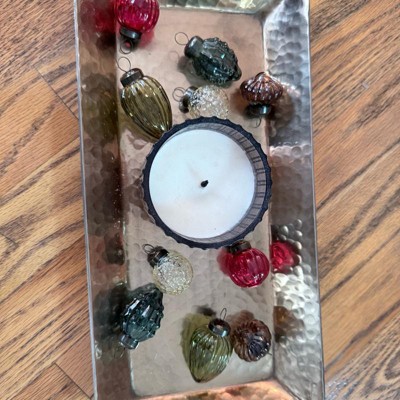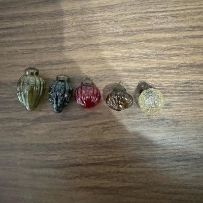 [This review was collected as part of a promotion.] These mini vintage glass ornaments are absolutely beautiful. They have a timeless old fashioned charm that adds such a cozy touch to your holiday decor. The glass colors are rich and elegant, and I just love the mix of shapes and sizes. They are smaller than our standard ornament so will work perfectly for a small tree, garland, or displayed in a decorative bowl or vase.