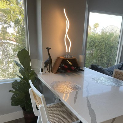 These chrome ribbons of light add subtle interest to any room. With an on/off switch on the round base and integrated LED functionality, it's also energy efficient and functional for a variety of spaces. Try mixing it with traditional furnishings for an eclectic twist, or add to a minimalist space for a fitting accent.