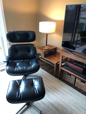 The shade is large, not very tall, and does not have a top cover. Consequently, when we put it on an end table in the middle of the living room, we found it hard to avoid the glaring, bare light bulb. This lamp would work best if sitting on a higher surface in the corner or against a wall, so that you are not often standing near and above it. Also, the base looks nice but the middle part is pretty clearly fake wood. So, although the lamp has a nice look, if you examine it closely at all it is evident that the quality is not excellent.