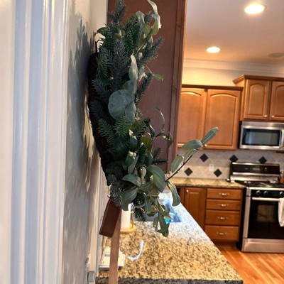 [This review was collected as part of a promotion.] I had ordered this wreath to hang on my front door, but I realized when I got it that is intended for indoor use only. Honestly, this wreath does not even look like holiday decor to me, and looks more like something that could be up all year long. The ribbon is also something that I really don’t understand and could not figure out how to style. The only part of the ribbon I could get to show were the two pieces that hang down, the loops are completely hidden by all of the foliage. I do really like all the greenery, so it could be a cute wreath without the ribbon. The wreath also sticks out terribly from the wall because of how the hanging hardware is attached to the wreath. I received an incentive to write this review.