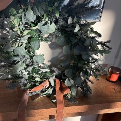 [This review was collected as part of a promotion.] I will be honest: I was excited to have this product arrive because I thought it would add elegance and simplistic beauty for the holiday season, but I was mistaken. The bow is not very visible and it is very floppy making it look not as neat. The greenery had potential, but up closes looks cheap and not very neat. I did not like the overall esthetic and felt like it was lacking.