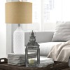 For over 30 years, Catalina Lighting has been creating stylish, well-crafted lighting solutions that inspire. Designed for modern living, our collections blend contemporary aesthetics with everyday functionality, making it easy to refresh your space with effortless style. Transform your space with a coastal touch using this modern table lamp. Perfect for your living room, bedroom, or home office, its distinctive quilted texture elevates it beyond a basic light source. The warm, inviting glow from the burlap shade adds a cozy ambiance to any room. LED bulb not included.