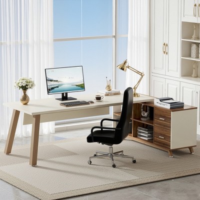 (Mid-Century Modern Design): Features a cream faux leather cushioned seat with a curved low back and walnut wood legs, blending classic style with modern elegance.
