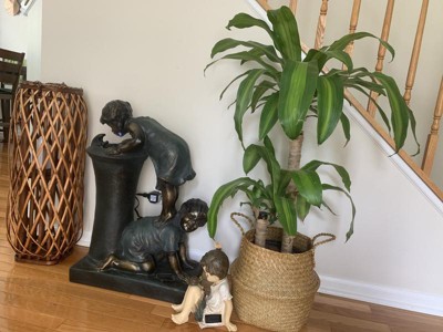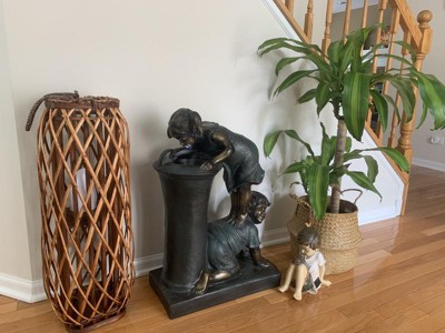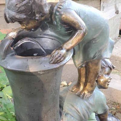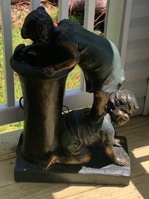 [This review was collected as part of a promotion.] This 27 inch tall alpine corporation fountain with a girl and boy drinking water is the sweetest fountain I have ever seen. It makes quite a statement as it is taller than my toddler granddaughter. The details are great. The little girl standing on a little boys back to get a drink is priceless. It was simple to put together following the directions. I am very happy with this fountain