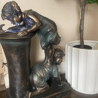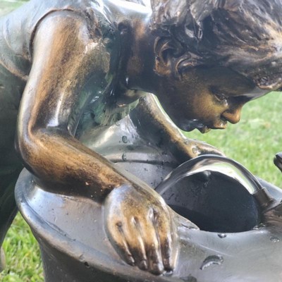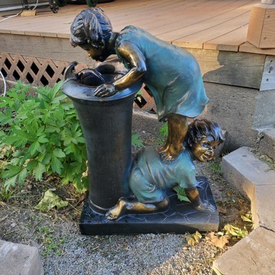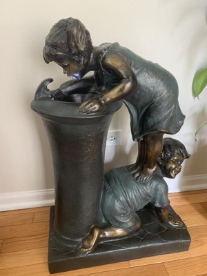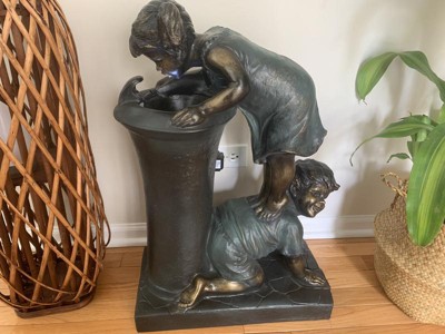 27" Resin Indoor/Outdoor Girl and Boy Drinking Water Fountain Yard Décor Bronze - Alpine Corporation