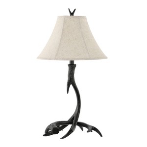 Create a classic lodge feel in your home with this rustic table lamp. Featuring a faux antler base, this nature-inspired lamp is beautifully rugged and artistic. The natural linen drum shade diffuses the light for a soft, warm cabin glow.