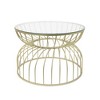 - MODERN DESIGN: This coffee table is the perfect integration of a clear tempered glass top with a gold metal bases. The metal frame is designed with hollowed out lines on the top and bottom. The simple and stylish style brings unique charm.
