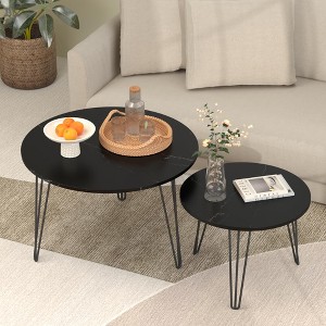 27.56" MDF and Metal Round Nesting Coffee Table Set of 2 with Sturdy Construction and Multi-Purpose Use