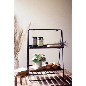 27 Inch Two-Tiered Display Rack – Metal Black Rectangular Design by Kalalou