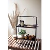 Keep your home or workspace organized with this Two-Tiered Rectangle Display Rack, measuring 19.5x10x27 inches. Crafted from durable metal with a distressed black finish, this versatile rack offers both form and function. The two-tiered design provides ample storage for supplies, décor items, or seasonal displays. Whether you use it to organize kitchen essentials, show off plants, or highlight collectibles, this piece adds a touch of industrial charm to any setting. The folding structure allows for easy storage when not in use, making it a practical and stylish solution for homes, offices, or retail spaces. Perfect for transitional décor themes and year-round use.