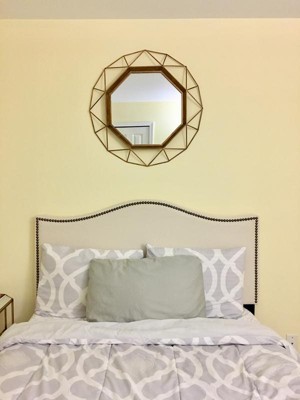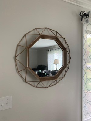 This Stonebriar 28.3" decorative octagon wall mirror gives a little extra pop to home decor. Stonebriar's decorative geometric mirror measures 28.3 in. x 28.3 in. with the frame and the mirror measures 17.2 in. x 17.2 in. alone. It is the perfect size to use as a vanity mirror in your bathroom or hang it as an accent mirror on any wall in your home. Mirror comes with attached hanging brackets for easy installation right out of the box!
