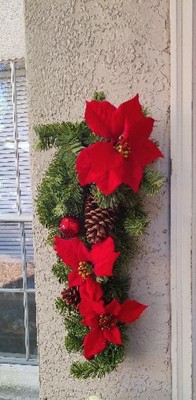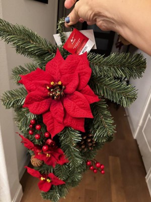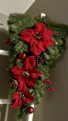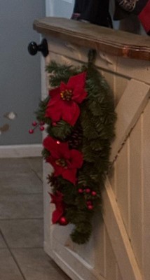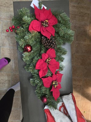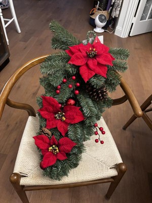 28" Decorated Pine and Poinsettia Flowers Hanging Christmas Artificial Swag - Wondershop™