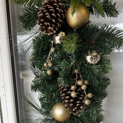 Finish decorating your home for the holidays with the 28-Inch Decorated Pine Christmas Artificial Swag from Wondershop™. Perfect for hanging on the front door, near the entrance or the living room mantel, this unlit artificial swag features glittery mixed tips, pinecones, berries and ornaments to bring a lovely look to any indoor setting. Plus, it's finished off with a string loop for easy hanging anywhere you please.
