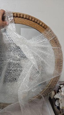 A: Hello Sunshine - Thanks for your question! This beautiful round decorative mirror is enclosed in a light brown wooden frame inlaid with beaded detailing for a touch of visual intrigue. The frame does not require sanding, it is finished. We hope this mirror brings brightness to all of your days! - Jackie