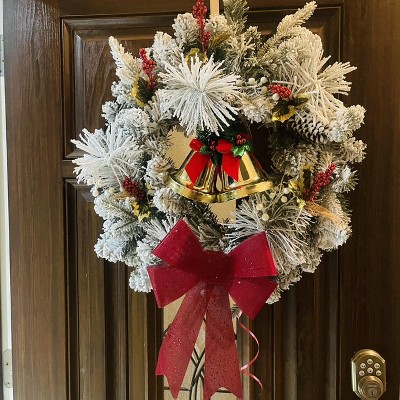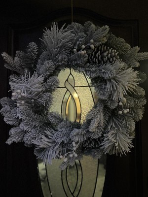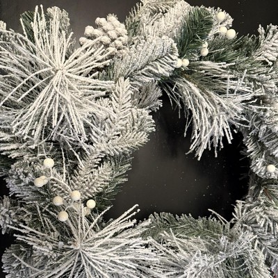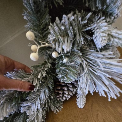 - 28in flocked mixed greenery Christmas wreath