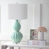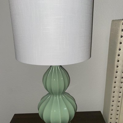 The classic midcentury double-gourd gets a feminine update in this fluted glass table lamp. Tall and narrow, it's ideal scale for nightstands and console tables without much surface area. Add a welcoming glow by using it as a colorful accent, and feel good about turning it on – it’s compatible with all standard A19 bulbs – including LED bulbs.
