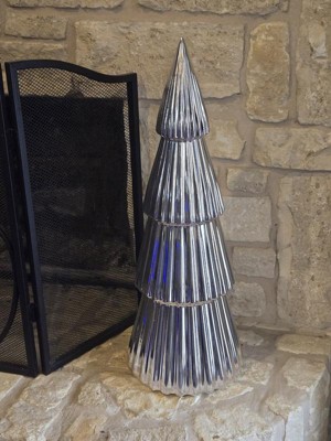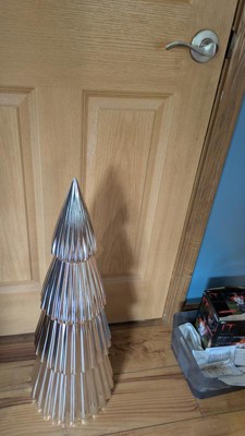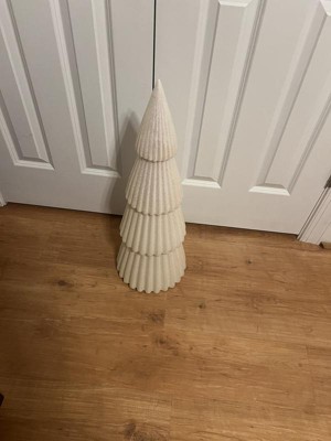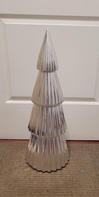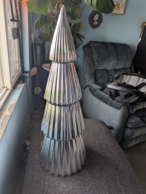 This 28 inch christmas tree decor is so cute! Its big, but super light weight. I love the textured look of it and the silver. It makes great christmas decor. I wouldnt use it outside if its windy because its really lightweight but its great for indoor use.