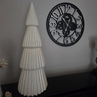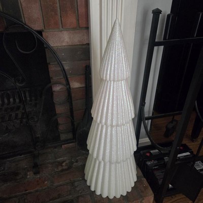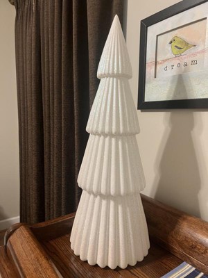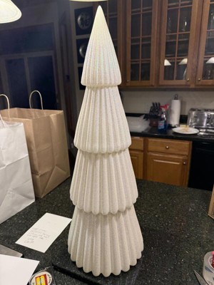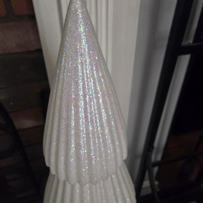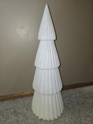 Bring wintry brilliance to your holiday decor with this Christmas Glittered Tree from Wondershop™. Made from plastic, this 28-inch tree figurine showcases a tiered, triangular silhouette with an iridescent glittered finish for a celebratory look. Showcase it as a standalone piece or surround it with candles and seasonal figurines for a very merry display.