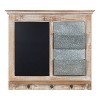 - Multifunctional: This wall organizer features a chalkboard for writing memos, two galvanized metal pockets for mail, three metal hooks for keys and light jackets, and a small ledge for display accents