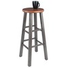 Bring a little farmhouse to your den, kitchen or family room seating area with the versatile Winsome Wood Ivy Bar Stool. With a teak finished seat and rustic gray frame, this weathered finish brings out the warm, handcrafted feel of the solid wood and will look right at home with either traditional or country decor. Featuring high and low crossbars on all four sides, for stability and comfort making this stool not only attractive but also very functional. The already assembled, square legs and 12” round seat have a sturdy built and hold a static weight of 220lbs. Ideal for extra seating when company comes over, pull up a stool then set it aside and use as a stand. The simple but still appealing rustic edge of this stool allows it to be used as a side piece to display a small plant, lantern, or a vase. The Winsome Ivy collection is available in other rustic finishes and like most Winsome stools it’s available in both bar and counter height. Conveniently packed and shipped in one box and is ready to use, no assembly is required.