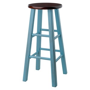 The 29-inch Ivy Bar Stool from Winsome is the perfect way to add a touch of farmhouse charm to your home. This wood counter stool has a round seat in a rich brown color, and the light blue base has a distressed finish for a rustic look you'll love. The wood frame is stable and strong, and the bottom rungs provide a footrest for added comfort. Pair this simple stool with coordinating pieces for a unified feel, or mix it with a variety of styles and colors to create a curated look.
