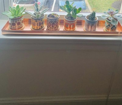 Beautiful copper tray. Perfect for my 6 small succulents. A little expensive but was the perfect size and exactly what I was looking for.