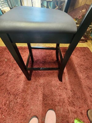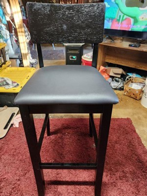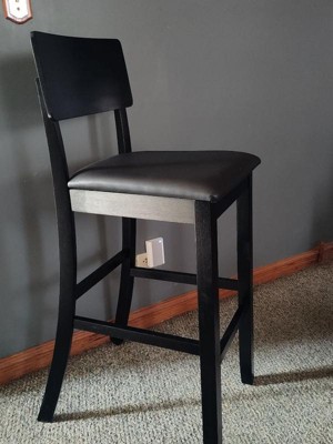 Elevate your kitchen or home bar with the sleek and stylish Torino Black Contemporary Barstool. Crafted from sturdy solid rubberwood and featuring a rich black finish, this barstool is designed to complement a variety of décor styles. The padded seat and backrest, covered in easy-to-clean faux leather, ensure both comfort and convenience. Whether you're entertaining guests or enjoying a casual meal, the curved back and footrests provide ample support, making this stool ideal for long periods of use. With a 30-inch seat height, it pairs perfectly with bar counters ranging from 41 to 43 inches tall.