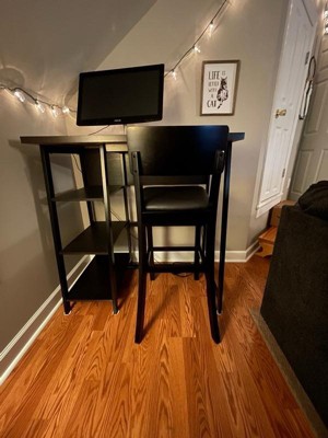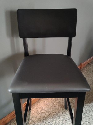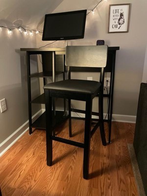 COMFORTABLE SEATING: Designed with comfort in mind, this barstool includes a padded seat and a gently curved backrest. Both are upholstered in easy-care black faux leather, providing support for your back while ensuring long-lasting comfort, whether you're sitting for a quick meal or a longer gathering with friends.