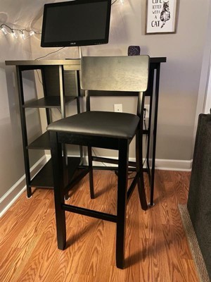 [This review was collected as part of a promotion.] This black contemporary barstool was easy to assemble. I used the tools provided and a drill to put it together in 40 minutes by myself. It is the perfect height for my standing desk. The seat cushion is comfortable. The modern style matches my decor perfectly. Having a backrest is important to me and provides relief for my back and neck.