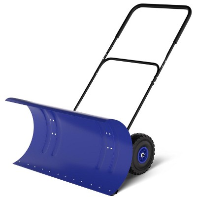 29" Snow Pusher with Wheels, Heavy-Duty Steel Blade, Adjustable Handle & 60¡ãTilt, for Efficient Driveway Clearing