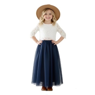 2Bunnies Baby Toddler Girls 12m-24m 2 Piece Lace Top Tulle Skirt Boho Rustic Girl Dress Set Dusty Blue 24 months