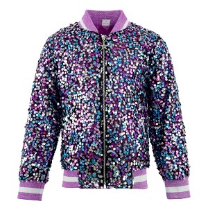 2Bunnies Girls' 4T-12yr Amethyst Dream Sequin Bomber Jacket - 1 of 4