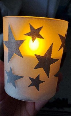 2ct Battery Operated Glass LED Candles with Moving Flame Silver Stars: Flameless Pillar, Winter Decor, Lumabase