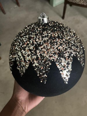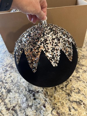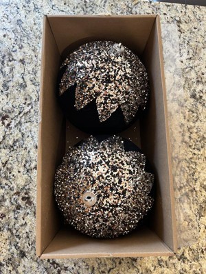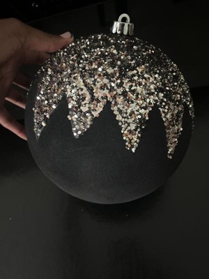 2ct Christmas 200mm Flocking Ball with Handgraft Chunky Glitter Ornament Set Black - Wondershop™