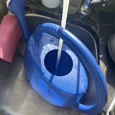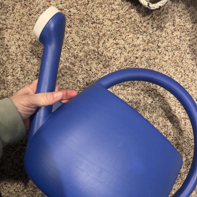 [This review was collected as part of a promotion.] The blue watering can functional, practical, and simple. It’s straightforward and modern design of a single handle the travels the length of the watering can is surprisingly useful. In my opinion, the one down-side of having an overhand handle is that it partially blocks the filling procedure and depending on where you are filling the can up at (kitchen sink vs. outdoor spigot), it can be slightly more difficult to fill. I received an incentive to write this review.