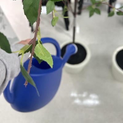 This 2-Gallon Plastic Watering Can from Room Essentials™ offers a stylish solution to your everyday gardening needs. This cobalt blue watering can features a distinctive silhouette complemented by a long spout with a wide nozzle, making it stand out as a functional and stylish tool. Boasting a rust-, weather- and corrosion-resistant plastic construction, it's designed for lasting outdoor use and holds up to 2 gallons of water.