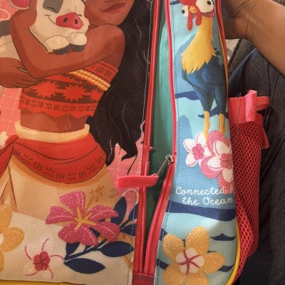 Cute Moana bag that my daughter loved. The padding on the straps and the inside pocket is nice. However, she was gutted when the zipper came off out of no where. Mind you, she is in kindergarten. The only thing that she carries in this bag is a folder and her lunch so this isn't a factor of her carrying things that are too heavy in the bag. We are very disappointed.