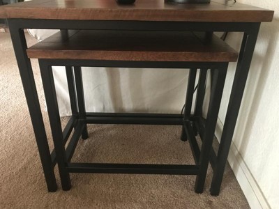 Rhonda Solid Mango Wood and Metal 25 inch Wide Rectangle Industrial 2pc Nesting Side Table, Fully Assembled. Modern Industrial Style. Black Metal Frame and Legs. Handcrafted with care using the finest quality richly grained solid Mango Hardwood & Metal. Small Table: 20" h x 20.75" w x 14" d