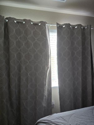 [This review was collected as part of a promotion.] These Sun Zero Tikal blackout curtains honestly impressed me more than I expected. The fabric feels thick and high-quality, and the woven ogee pattern adds a soft, elegant touch to the room without being too busy. They block out almost all outside light, which has made a huge difference during daytime naps and early mornings. The grommets glide smoothly on the rod, and the curtains hang beautifully with a clean, modern shape. Overall, they look stylish, offer great privacy, and truly deliver blackout performance.