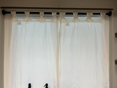 This handsome cotton curtain is classic good looks with a twist. Washed Cotton Twist Tab Cafe Curtain Pairs from Archaeo add personality with a unique twist tab top design reminiscent of the classic bow tie. Ideal for kitchens, bathrooms, and other smaller windows, these washed texture semi-sheer 100% cotton cafe curtains gently filter light while enhancing privacy. Tab top design allows for simple slide-through installation on curtain rods up to 1 ½" in diameter. Set includes two seafoam green tiers measuring 52" width by 36" length. Coordinating valances or swag pairs are sold separately. Measure carefully before selecting your desired size. Rod not included. Machine wash cold on gentle cycle. Use non-chlorine bleach when needed. Line dry, using a cool iron as needed.