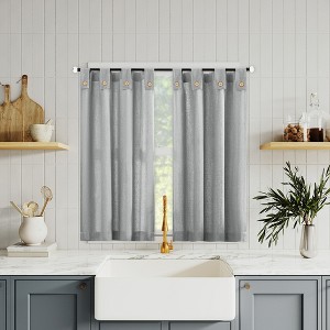 [This review was collected as part of a promotion.] These kitchen curtains are super cute! I love the material and the cute wooden buttons on top! They provide privacy while still letting light through. Super modern and well made.