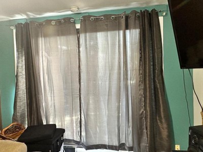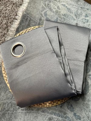 [This review was collected as part of a promotion.] These curtains have since silver grommets and the color is a nice deep charcoal. The grommets make it easy to take them on and off of the curtain rod. They are not black out curtains so some light does peek through. The one negative for me is the quality of the material used to make the curtain itself. It feels a bit cheap, but it’s not an overly thin material.