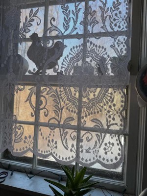 [This review was collected as part of a promotion.] Significantly shorter than I expected. I could see this fitting maybe a small laundry room or kitchen window. It has a beautiful pattern and it is definitely very delicate.