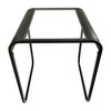 Keep up with the decade and work mellow arcs into your living space. The broad curved edge of the black bronze varnished fixture bounds tempered glass. Although the table is compact, its steel body can bear up to 50 lbs. U-shaped frames make this a stylish piece with plenty of support.