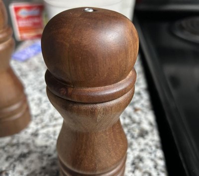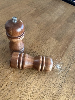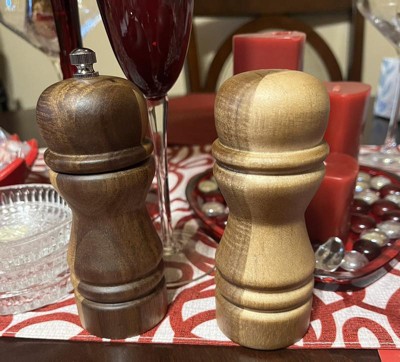 2pc Acacia Turned Salt Shaker and Pepper Grinder Set - Threshold™: Brown Spice Mills, 5.43" Height, 61 Volume Capacity